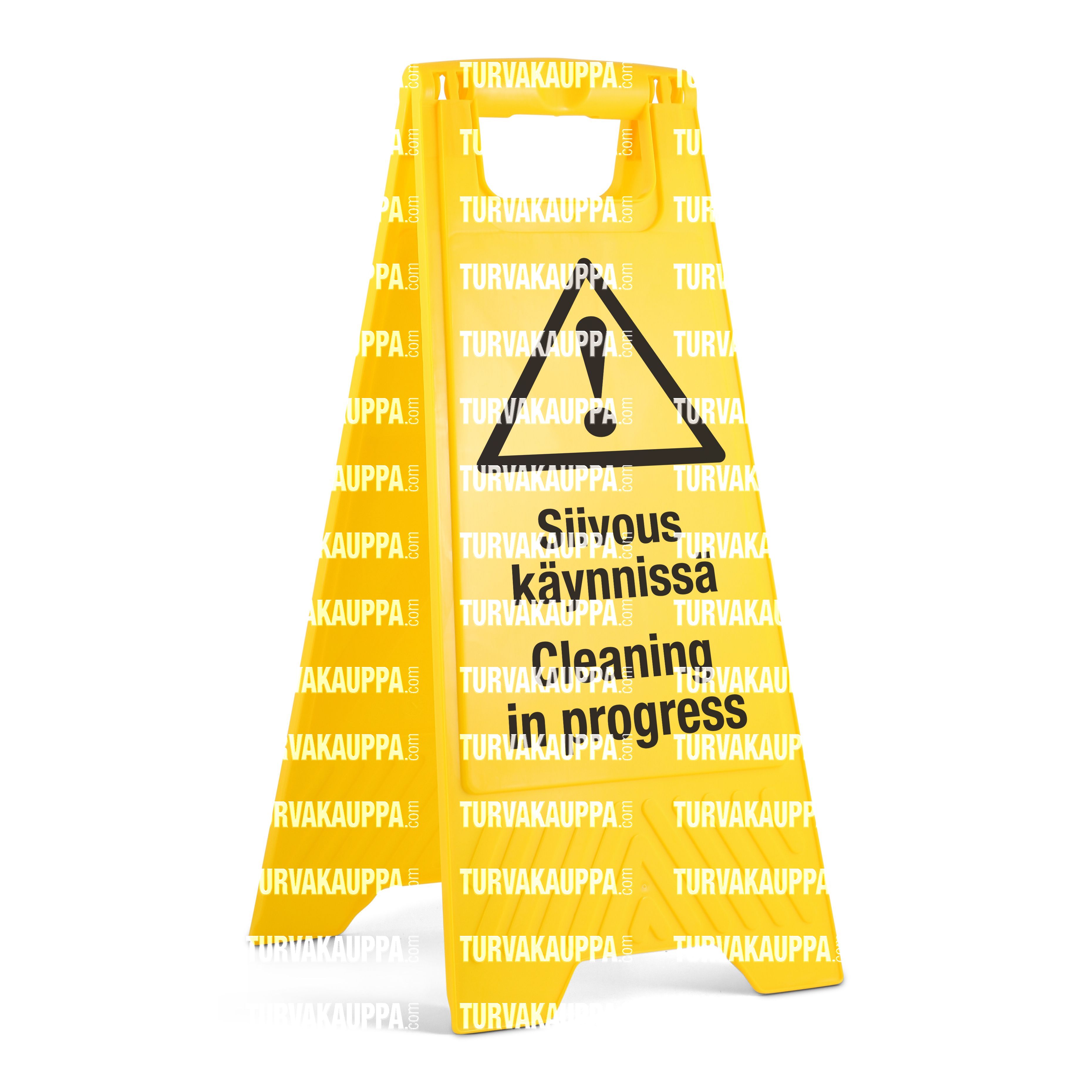 A-raam sisetingimustesse ja välistingimustesse hoiatussiltidega.
