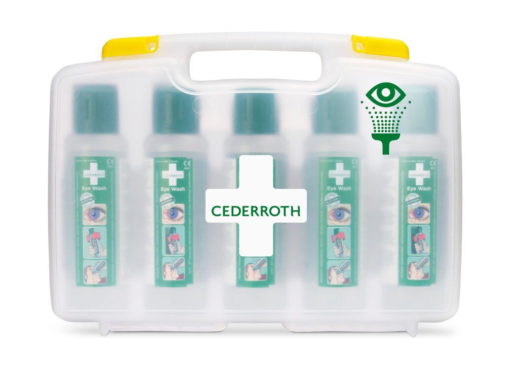 Cederroth silma loputuskomplekt (sisaldab 5 x 500 ml) kaasaskantavas pakendis. Mugav kaasa võtta näiteks liikuvatel töödel. Läbipaistev kaas ja kandekäepide. Lihtne avada külgsuunas libisevate klambritega. Võib seinale riputada seina hoidikuga.