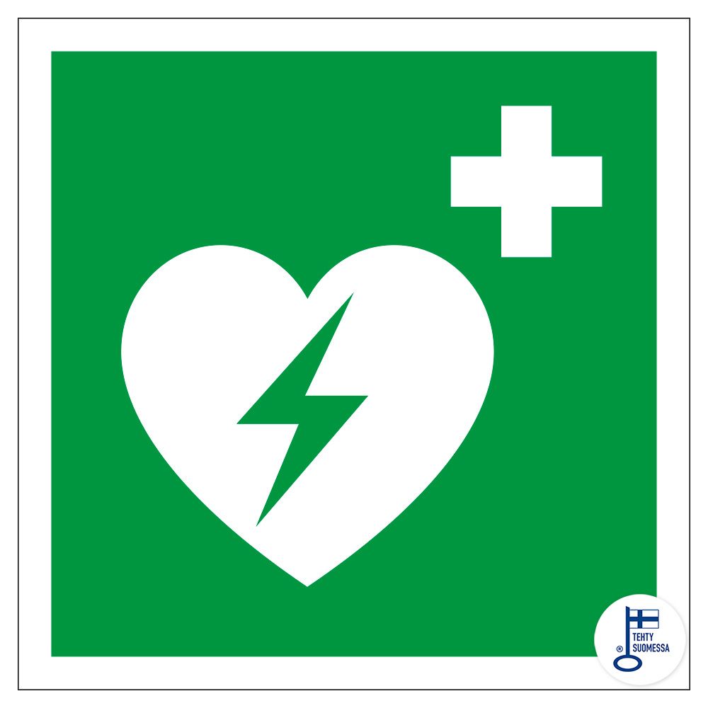 Esmaabimärk, AED defibrillaator (sümbol), mitmesugused materjalid ja suurused. Vali oma vajadustele sobiv! Juhised materjali ja suuruse valimiseks leiad allpool.