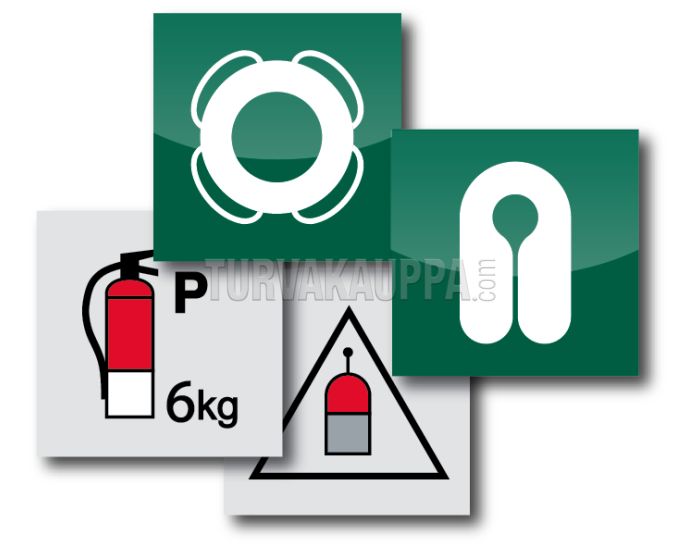 IMO turvasildid kleebise taustal. IMO märkide standardmõõt on 150x150 mm.
