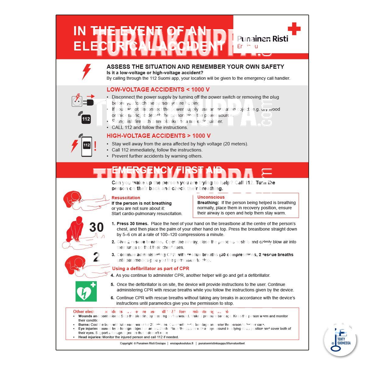 Juhised elektriõnnetuse korral EN, mitmesugused materjalid ja suurused. Valige oma vajadustele sobiv! Materjali ja suuruse valiku juhised leiate allpool.
