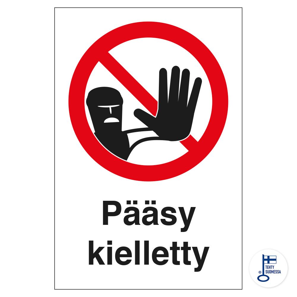 Juurdepääs keelatud (must käsi), mitmesugused materjalid ja suurused. Valige oma vajadustele sobiv! Materjali ja suuruse valimise juhised leiate allpool.