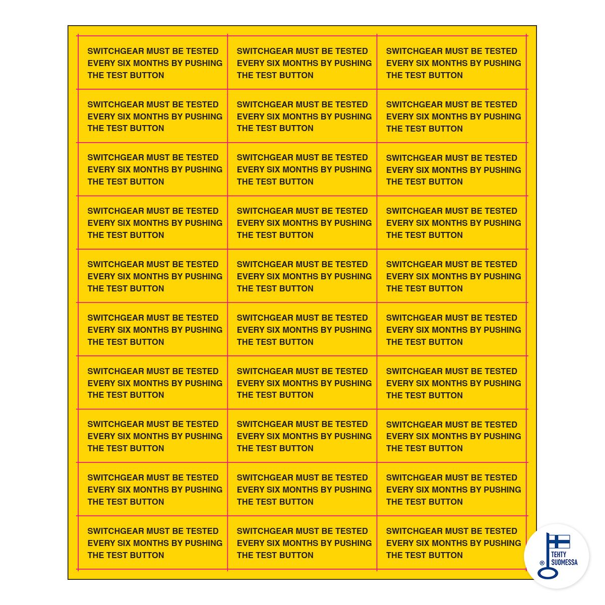 - Toote rada Avaleht Sildid ja juhisedElektritööstuse sildid Kleebisleht Switchgear tuleb testida...