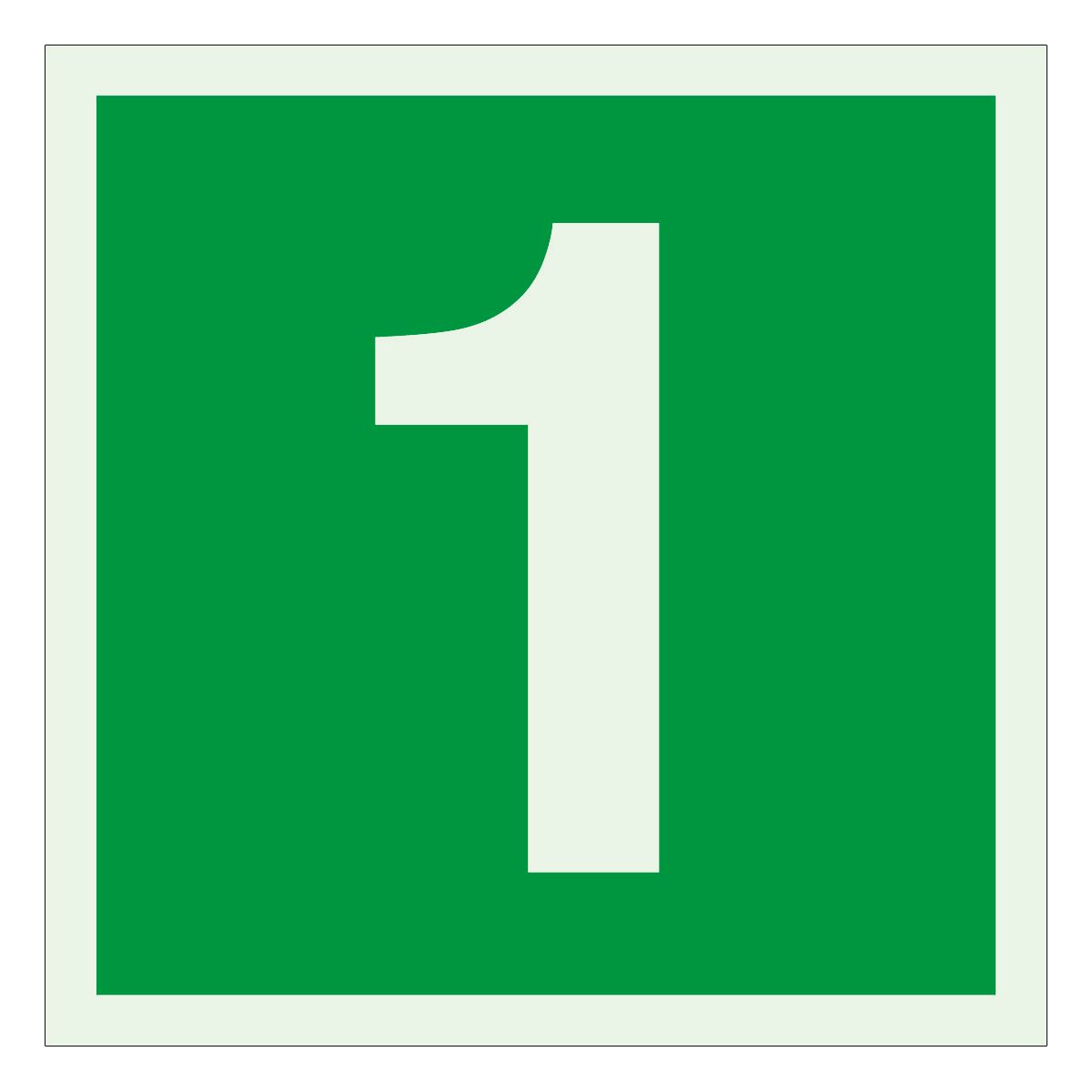 Korrusnumber 1, materjaliks on helendav plastik kleeplindi alusel. Märgi suurus 200x200 mm