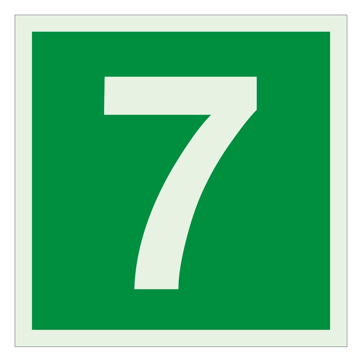 Korrusnumber 7, materjaliks on helendav plastik kleeplindi alusel. Märgi suurus 200x200 mm