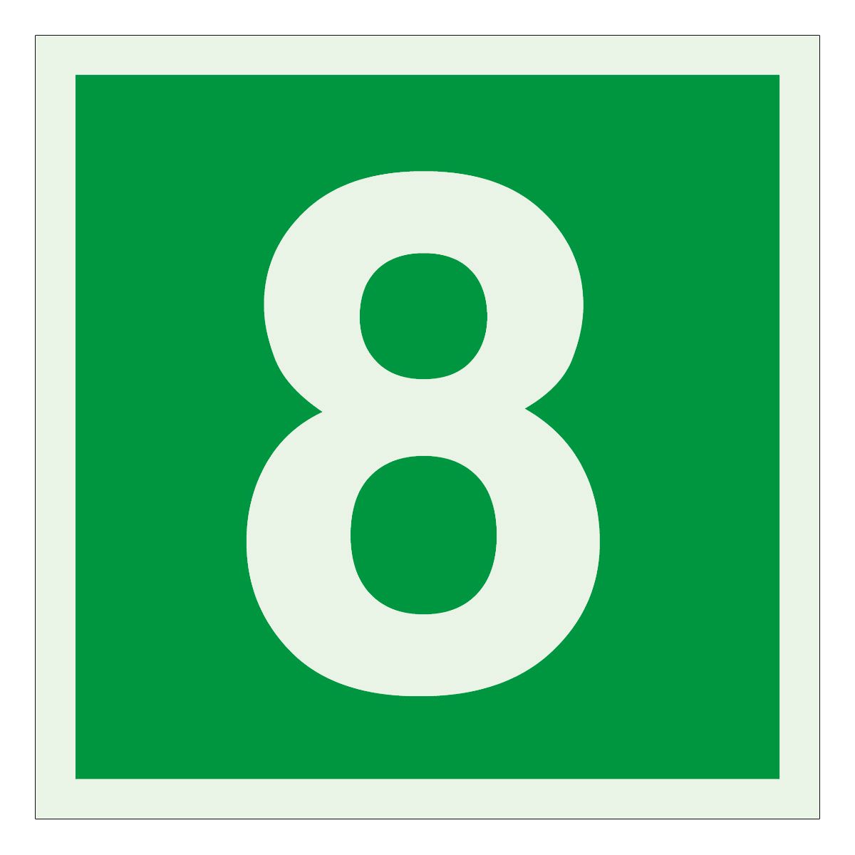Korrusnumber 8, materjaliks on helendav plastik kleeplindi alusel. Märgi suurus 200x200 mm