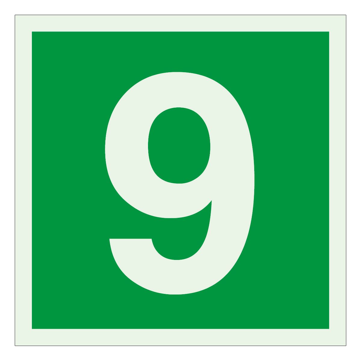 Korrusnumber 9, materjaliks on helendav plastik kleeplindi alusel. Märgi suurus 200x200 mm