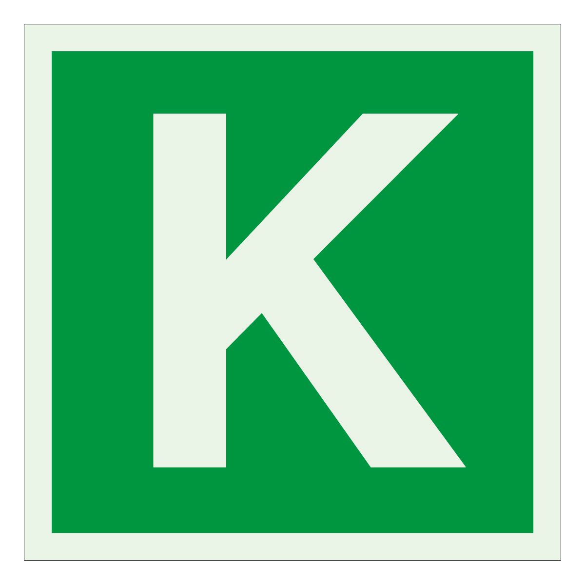 Korruse number K, materjaliks on helendav plastik kleebise alusega. Märgi suurus 200x200 mm