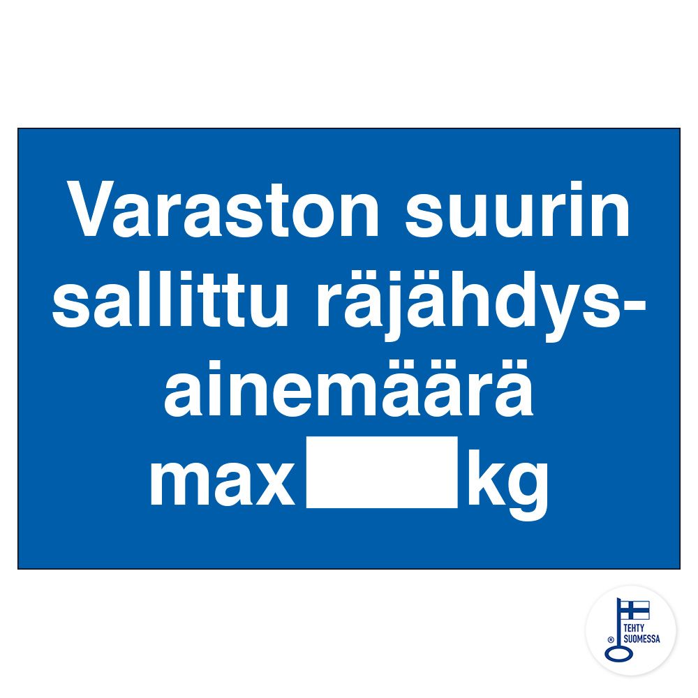 - Toote rada Avaleht Sildid ja juhisedJuhised Ladust suurim lubatud plahvatusaine kogus max _kg