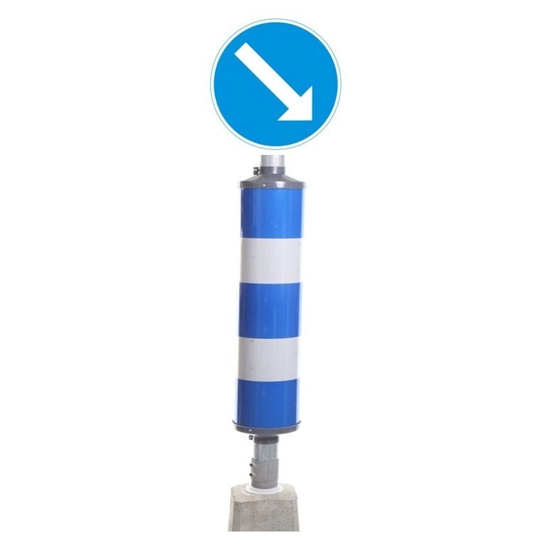 Sinise-valge triibuga tähelepanupost on suurepärane vahend näiteks liiklusmärkide tugevdamiseks.