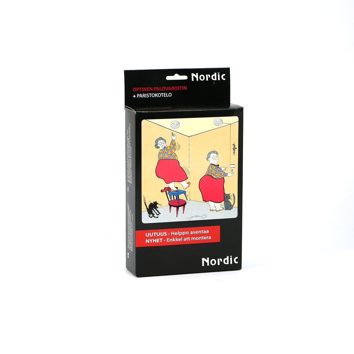 Pakend sisaldab optilist suitsuandurit, seinale paigaldatavat patareikasti, 9V patareid, kinnitustarvikuid ning kasutusjuhendit soome ja rootsi keeles.