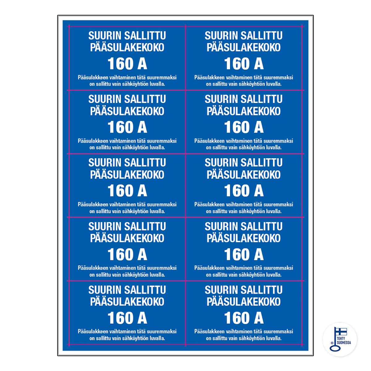 - Toote rada Avaleht Sildid ja juhisedElektritööstuse sildid Sulavkleepleht 160A