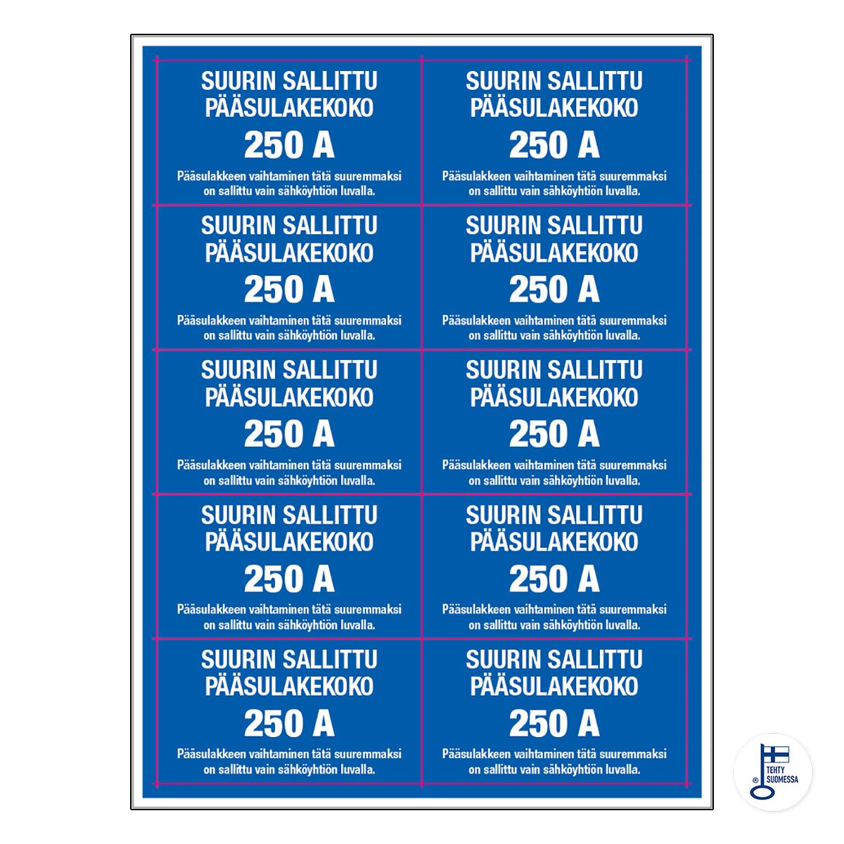 - Toote rada Avaleht Sildid ja juhisedElektritööstuse sildid Sulavkleepleht 250A