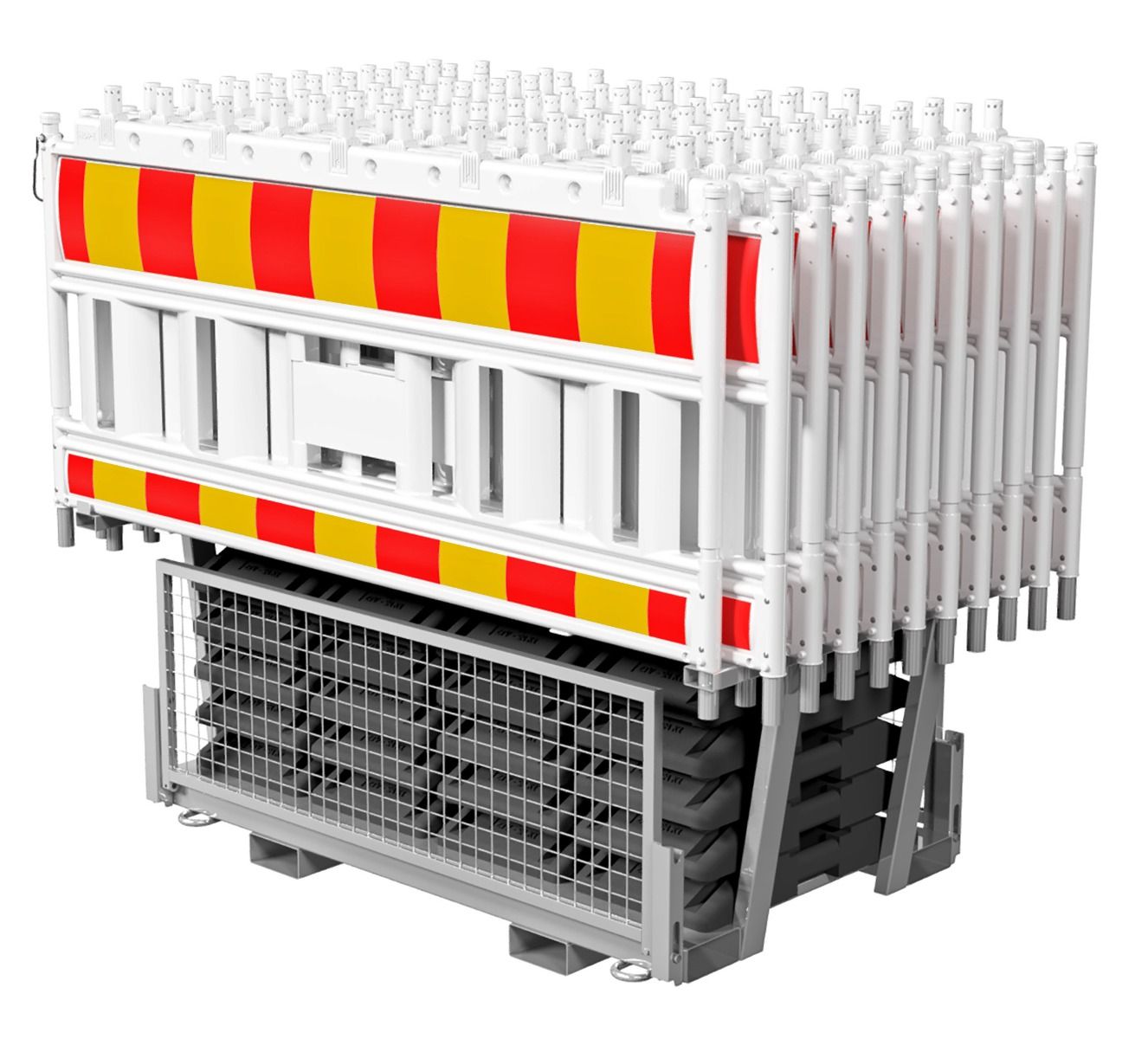 Kombineeritud tellingupakett, mis sisaldab 20 tk K1 ehitusplatsiaedu (tootekood TK-1202002) ja 20 tk K1 alustalasid (tootekood TK-1202003).