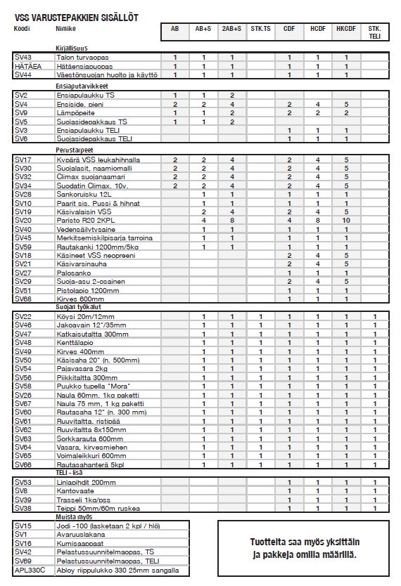 Vaadake allpool lisatud failist täpsemat sisu varustuspakkide kaupa!