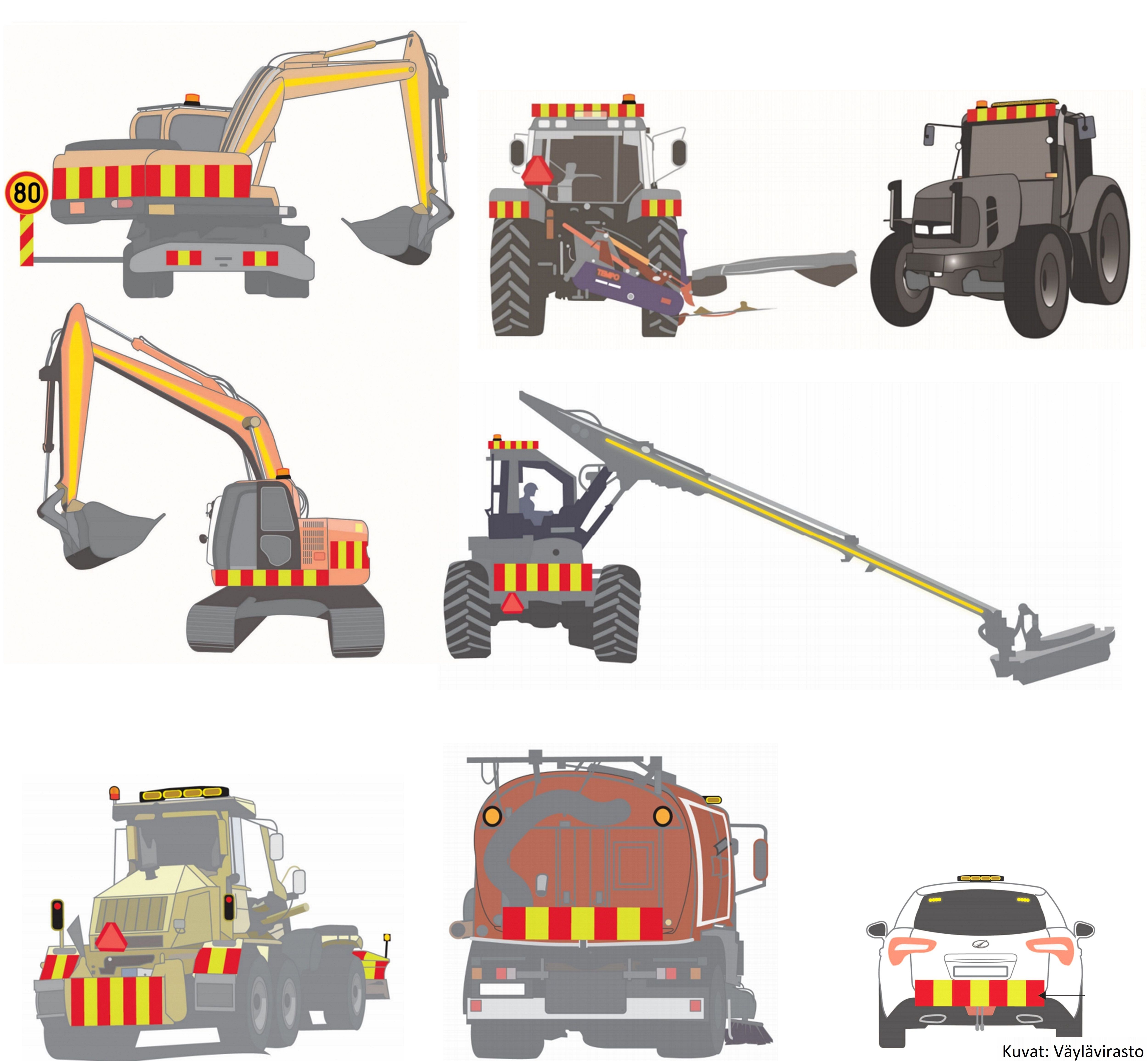 Märgid tuleb uuendada, kui need on silmaga vaadates kulunud. Teel töötavate töömasinate ja sõidukite nähtavus peab olema võimalikult hea. Nähtavust saab mõjutada masinate värvivalikuga. Kui töömasinaga töötatakse teealal, tuleb nähtavust parandada hoiatusmärkidega.